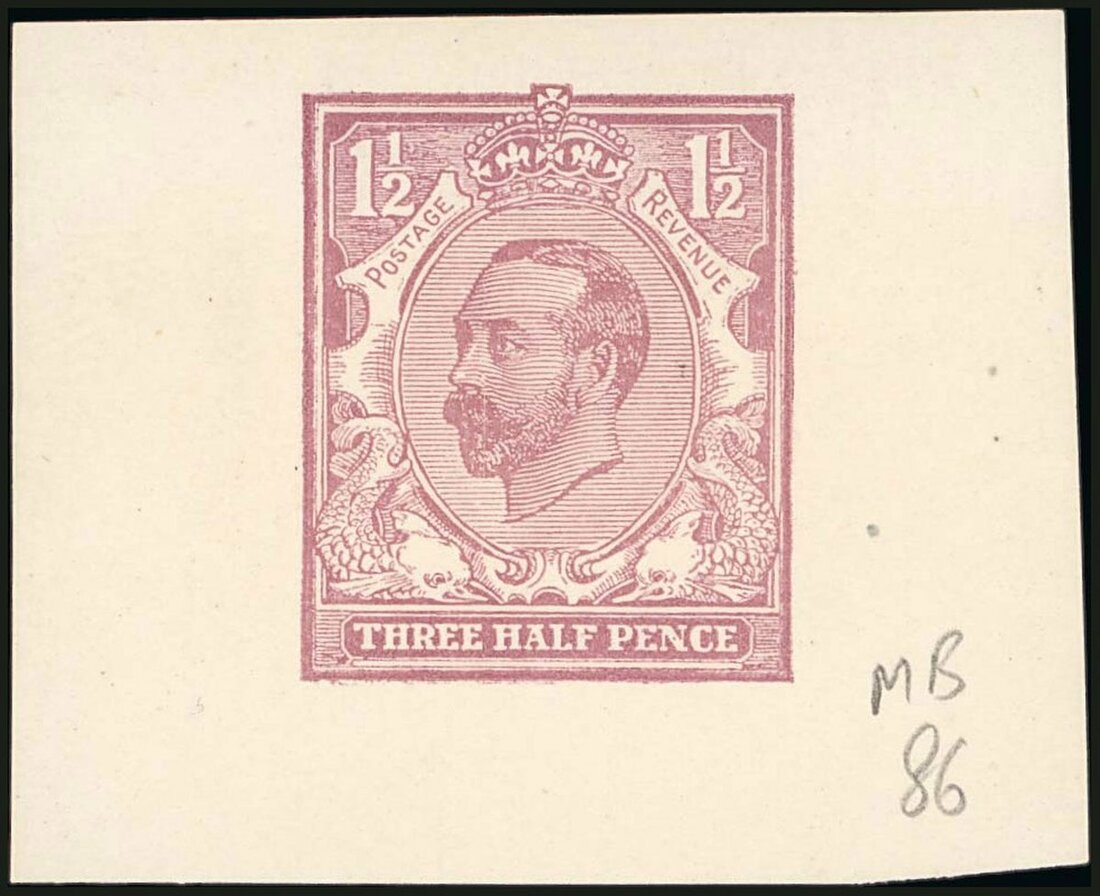 1½d. deep dull violet on white unwatermarked paper (40x33mm), with non-contemporary pencil "MB/86" below the design; fine. Photo