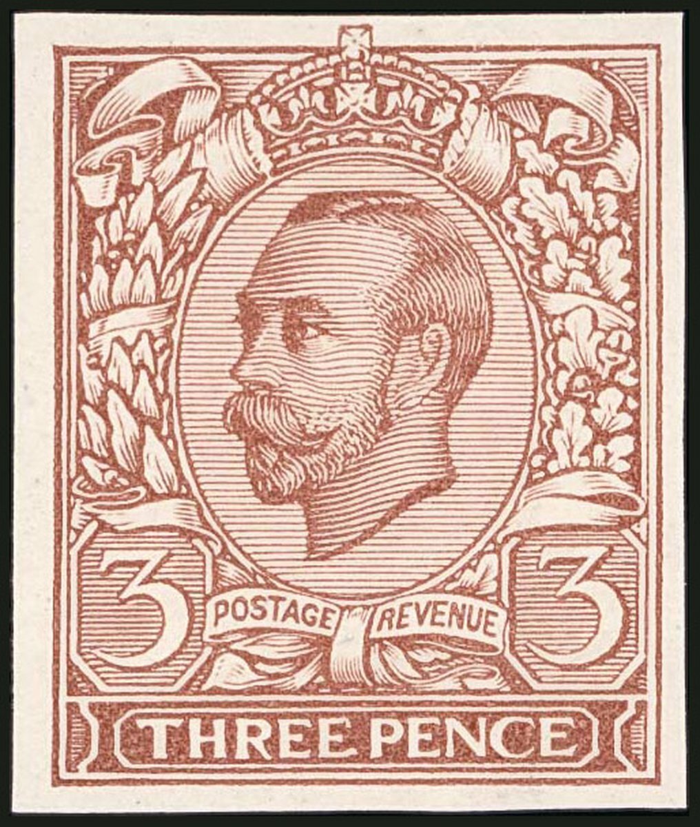 3d. brown cut down with good to large margins; fine. Photo