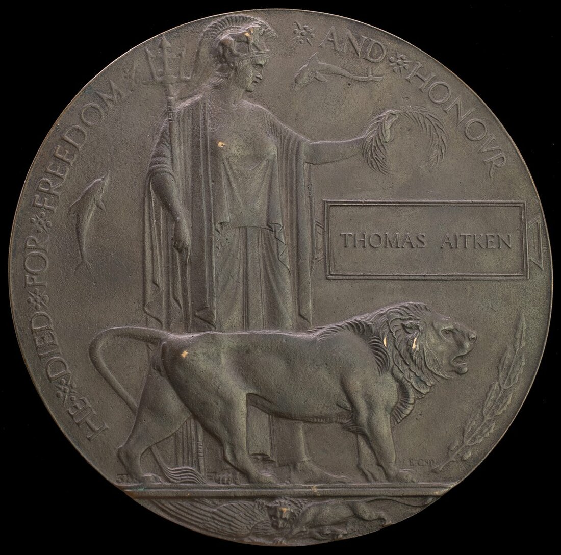 1914-15 Star (15417 Pte. T. Aitken. R.Sc:Fus:); British War and Victory Medals (15417 Pte. T. Aitken. R.S.Fus.); Great War Bronze Memorial Plaque (Thomas Aitken), very fine (4)