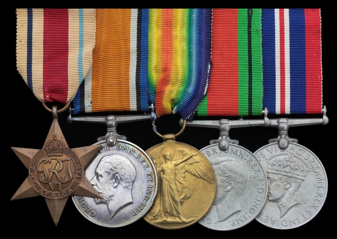 British War and Victory Medals (268373 Pte. J. S. Shopland. Devon. R.); Victory Medal 1914-19 (G-21056 Pte. A. G. Burke. R. W. Kent. R.); Africa Star; Defence and War Medals 1939-45, together with a Masonic jewel, the inner lid stamped 'Capt. Audley Lovell Cole Park Malmesbury' and a case of the Military Cross, the third with small official correction to number, very fine (8)