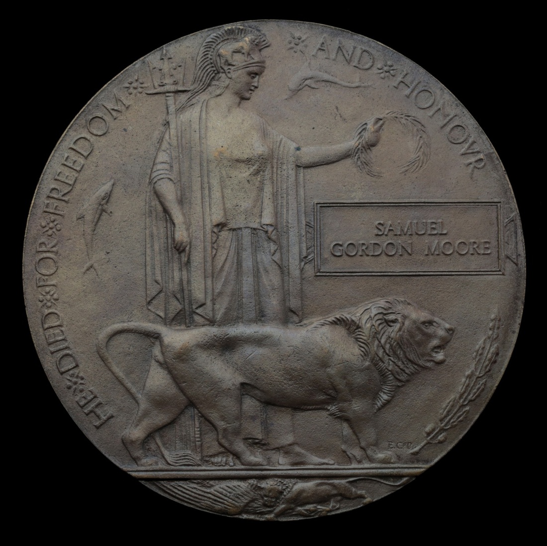 British War and Victory Medals (48962 Pte. S. G. Moore. S. Wales Bord.); Great War Bronze Memorial Plaque (Samuel Gordon Moore), good very fine (3)