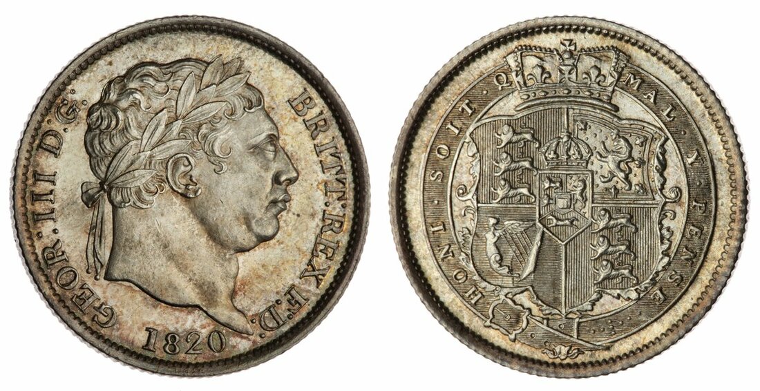 George III (1760-1820), 'New Coinage', Shilling, 1820, laureate head right, rev. crowned shield in Garter, edge milled, 5.64g, 12h (Bull 2157; ESC 1236; Spink 3790), the obverse quite brilliant and suggestive of a re-employed proof die, otherwise a pleasing extremely fine, the last year and 'Diamond Jubilee' date of King George III