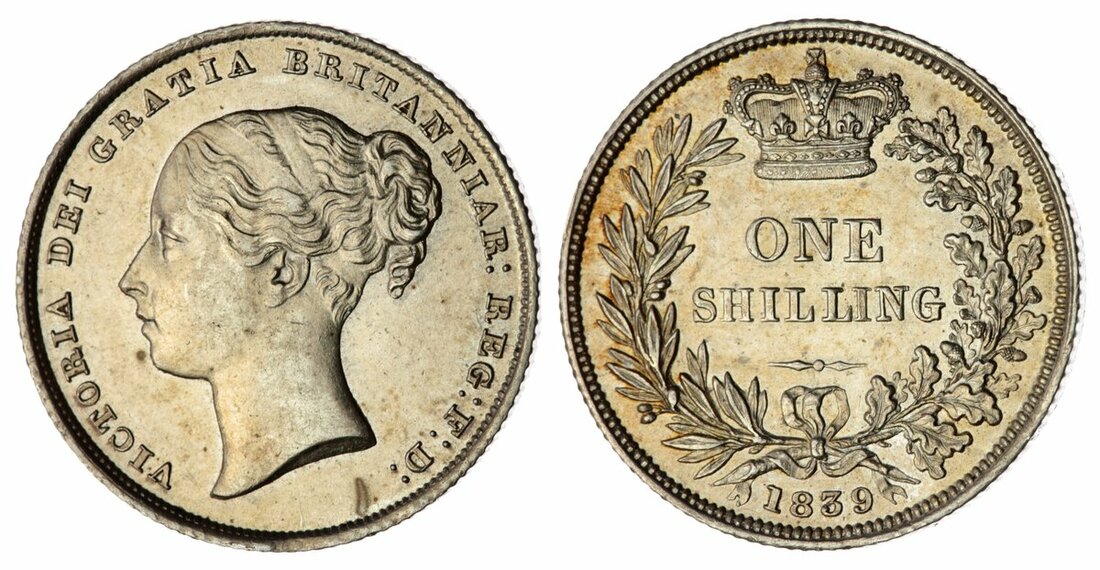 Victoria (1837-1901), Shilling, 1839, Type A³, first young head left, plain on truncation, rev. crowned value in wreath, edge milled, 5.67g, 7h (Bull 2979; ESC 1283; Spink 3904), lightly wiped, otherwise lustrous, a pleasingly bold very fine / near extremely fine