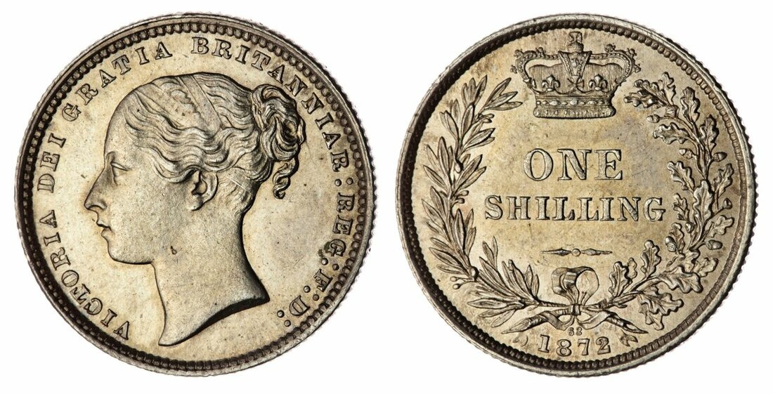 Victoria (1837-1901), Shilling, 1872 [Die 68], Type A6, third young head left, plain on truncation, rev. crowned value in wreath, die number below ties, edge milled, 5.66g, 7h (Bull 3042; ESC 1324; Spink 3906A), a lovely example, lustrous and reminiscently brilliant, a pleasingly good extremely fine