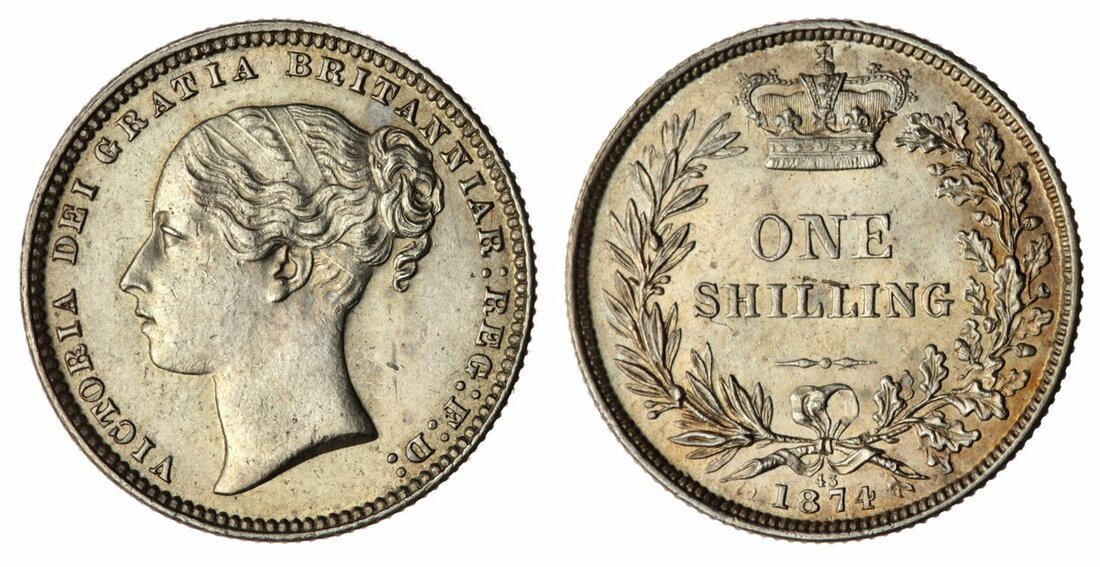 Victoria (1837-1901), Shilling, 1874 [Die 43], Type A6, third young head left, plain on truncation, rev. crowned value in wreath, die number below ties, edge milled, 5.66g, 7h (Bull 3044; ESC 1326; Spink 3906A), lustrous with the odd contact mark, otherwise almost extremely fine