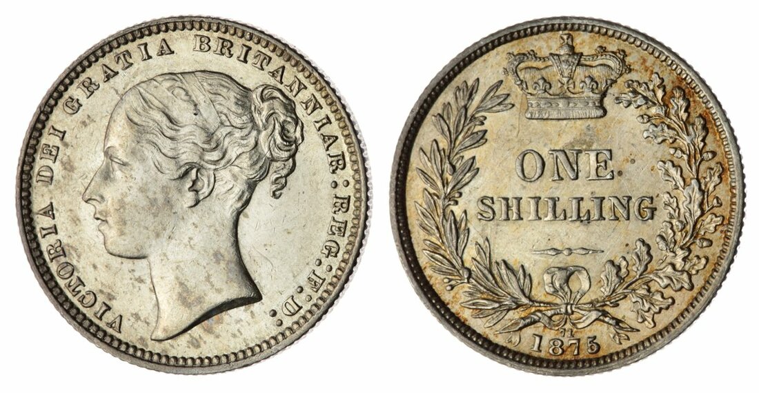 Victoria (1837-1901), Shilling, 1875 [Die 71], Type A6, third young head left, plain on truncation, rev. crowned value in wreath, die number below ties, edge milled, 5.67g, 6h (Bull 3045; ESC 1327; Spink 3906A), lightly wiped in obverse field yet residually lustrous, a bolder very fine