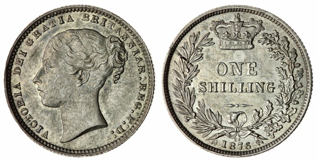 Victoria (1837-1901), Shilling, 1876 [Die 23], Type A6, third young head left, plain on truncation, rev. crowned value in wreath, die number below ties, edge milled, 5.66g, 7h (Bull 3046; ESC 1328; Spink 3906A), cleaned and partially retoned, residually lustrous, a really bold very fine