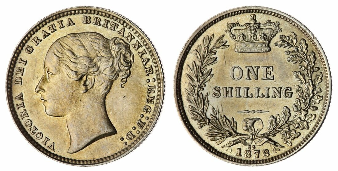 Victoria (1837-1901), Shilling, 1878 [Die 53], Type A6, third young head left, plain on truncation, loose ribbon, rev. crowned value in wreath, die number below ties, edge milled, 5.67g, 7h (Bull 3049; ESC 1330; Spink 3906A), lightly wiped but struck up and residually lustrous, almost extremely fine, the scarcer portrait type for date