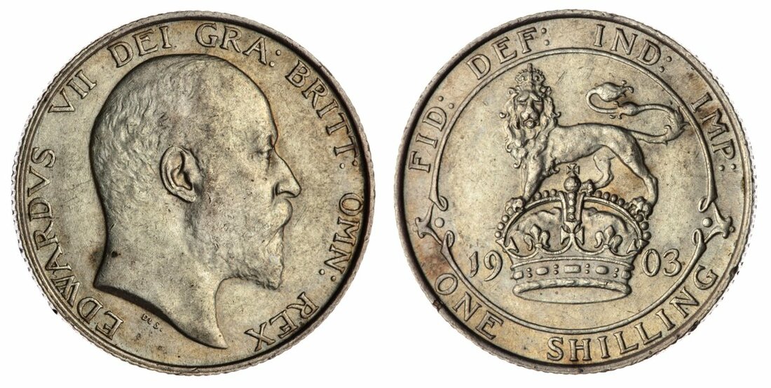 Edward VII (1901-1910), Shilling, 1903, bare head right, rev. Lion atop crown, edge milled, 5.66g, 11h (Bull 3589; ESC 1412; Spink 3982), rub to high points and softly struck as usual for issue, otherwise lustrous, strictly very fine, but above average for issue, a semi-key date in series