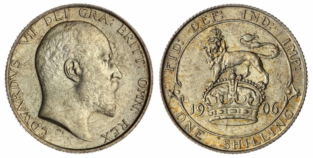 Edward VII (1901-1910), Shilling, 1906, bare head right, rev. Lion atop crown, edge milled, 5.67g, 12h (Bull 3592; ESC 1415; Spink 3982), some faint surface friction, otherwise softly toned overlying lustrous original surfaces, extremely fine or very near so