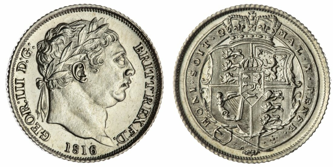 George III (1760-1820), 'New Coinage', Sixpence, 1816, laureate head right, rev. crowned shield within Garter, milled edge, 2.82g, 12h (Bull 2191; ESC 1630; Spink 3791), cleaned but lustrous, extremely fine