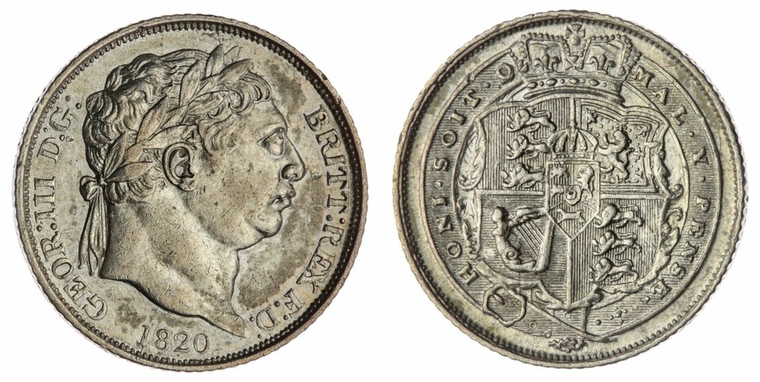 George III (1760-1820), 'New Coinage', Sixpence, 1820, laureate head right, rev. crowned shield within Garter, milled edge, 2.82g, 12h (Bull 2205; ESC 1638; Spink 3791), bright and light handling marks, yet lustrous, almost extremely fine