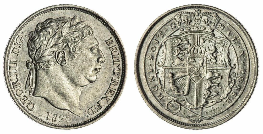 George III (1760-1820), 'New Coinage', Sixpence, 1820, 'Inverted 1', laureate head right, rev. crowned shield within Garter, milled edge, 2.81g, 12h (Bull 2208; Davies 107; ESC 1639A [R4]; Spink 3791), bright and lustrous, the inverted 1 error perfectly clear, extremely fine, very rare