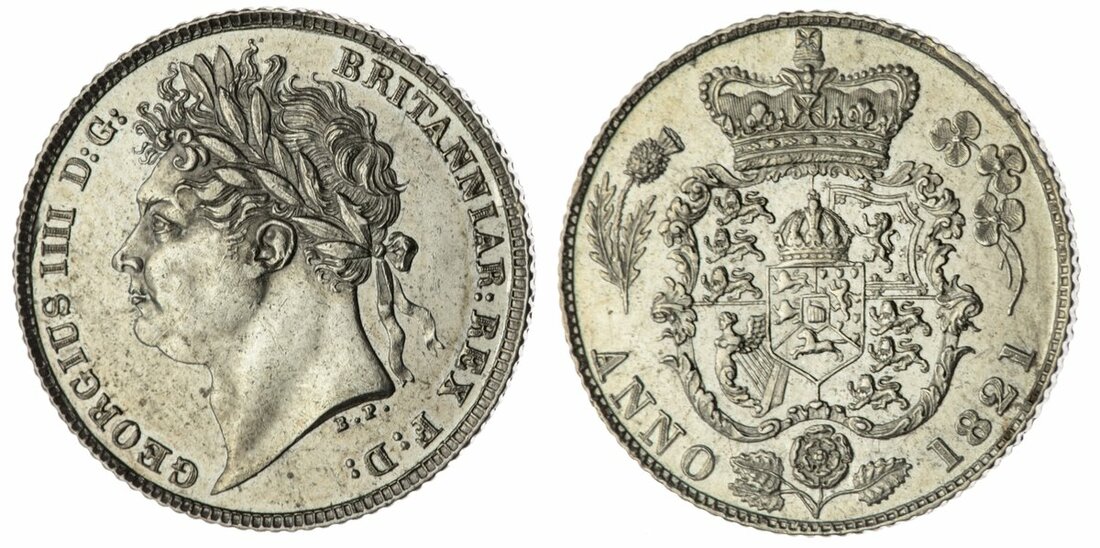 George IV (1820-1830), Sixpence, 1821, laureate head left, rev. crowned garnished shield, milled edge, 2.84g, 6h (Bull 2421; ESC 1654; Spink 3813), bright yet lustrous, a few scuffs on portrait, otherwise extremely fine