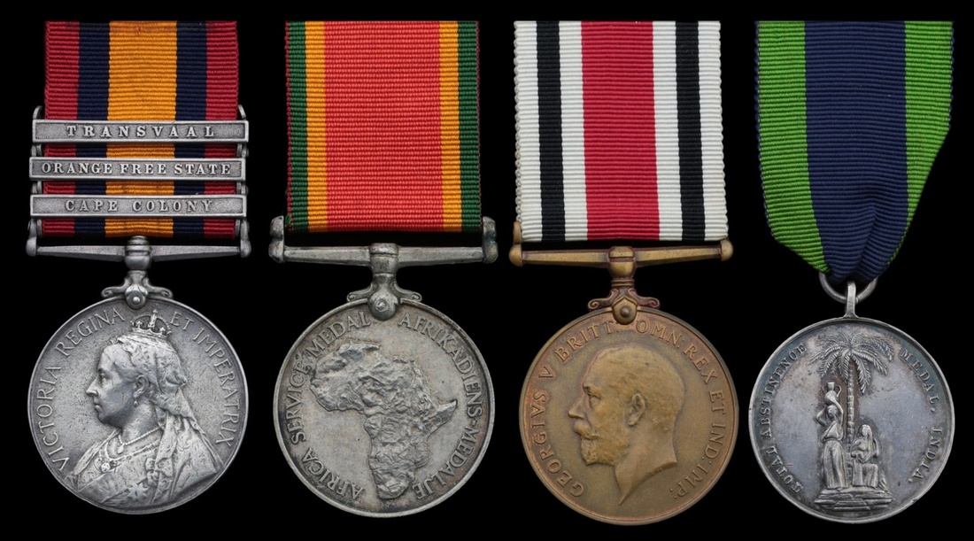 Queen's South Africa 1899-1902, 3 clasps, Cape Colony, Orange Free State, Transvaal (4391 Pte. P. McDermid. Royal Scots.), largely re-named; Africa Service Medal 1939-45 (C319558 S. C. Casper); Special Constabulary Long Service, G.V.R. (Richard Gilpin); East India Temperence Medal, silver, very fine (4)