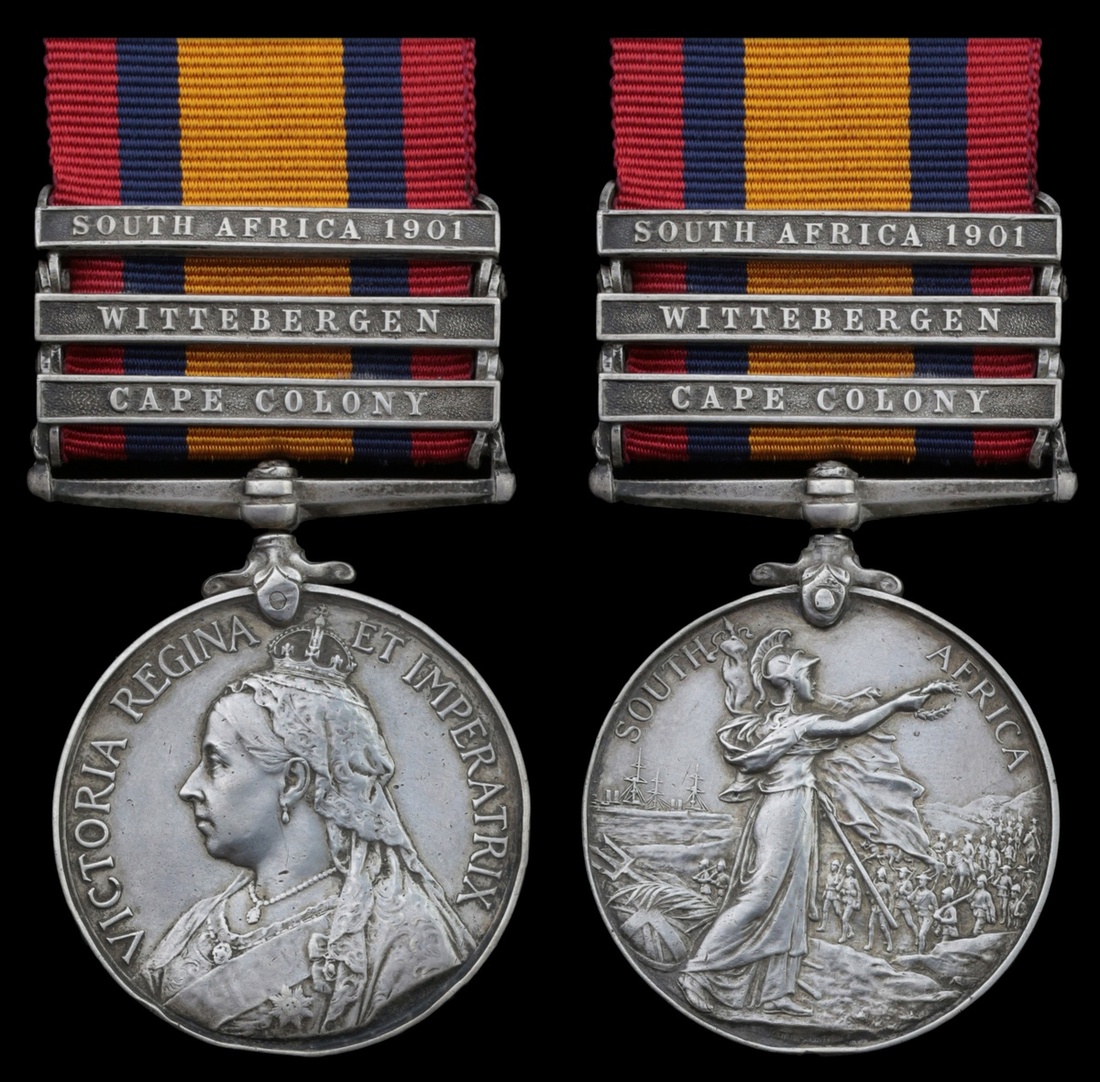 Queen's South Africa 1899-1902, 3 clasps, Cape Colony, Wittebergen, South Africa 1901 (4771 Pte J. T. Robinson. S. Stafford: Regt), suspension loose, edge bruise, minor contact wear, overall very fine