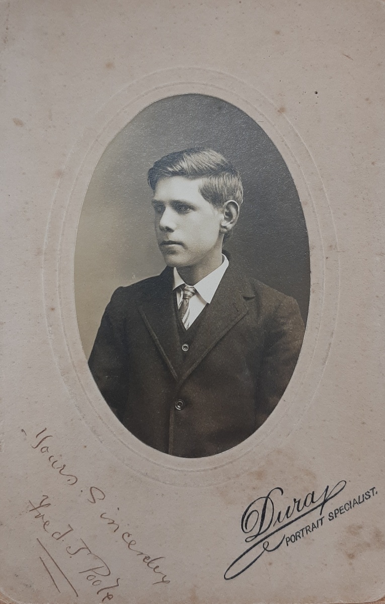 Frederick John Poole was born at Glamorgan on 14 March 1898, the son of Thomas and Ada Poole. In the early years of the war he studied at the University of Wales and a number of other institutions with the goal of becoming a teacher. Enlisting on 7 June 1917 he entered the war on 3 October 1917 with 12th Battalion, South Wales Borderers.
