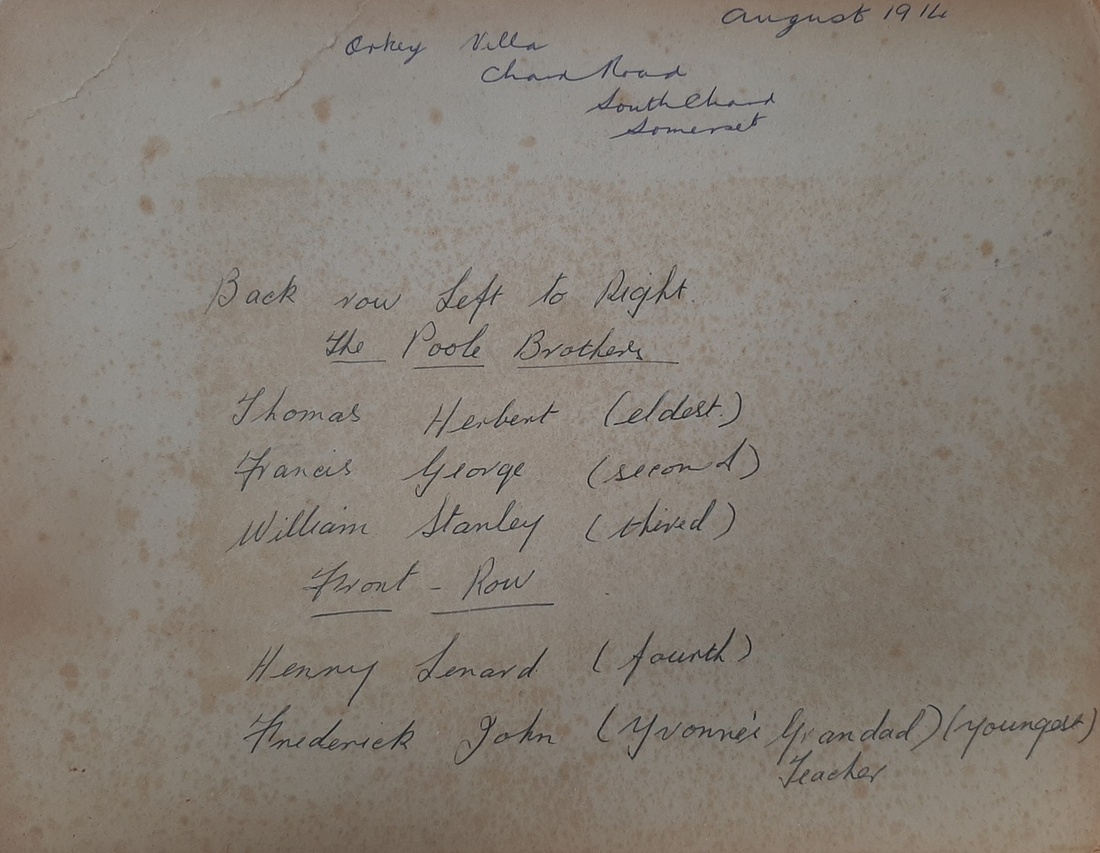 Francis George Poole more commonly called 'Frank' was born in 1895, at Glamorgan, the son of Thomas and Ada Poole. Enlisting with the Gloucestershire Regiment at Pentre, Glamorgan, Poole entered the war in France on 1 January 1915 but was wounded on 9 May with 1st Battalion which saw heavy fighting on the Rue de Bois. Returning to France after his recovery he joined the 8th Battalion, this unit saw action for the first time at the Battle of Loos from 25 September 1915 and later during the Somme Offensive.