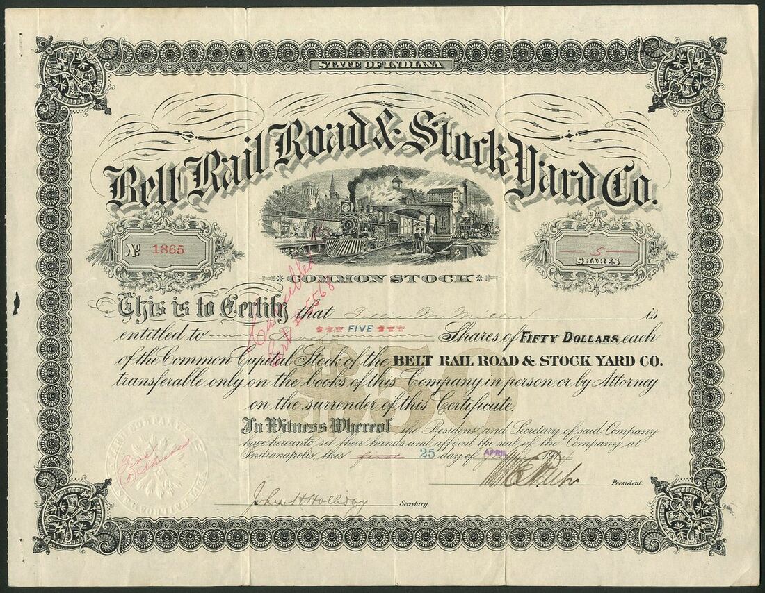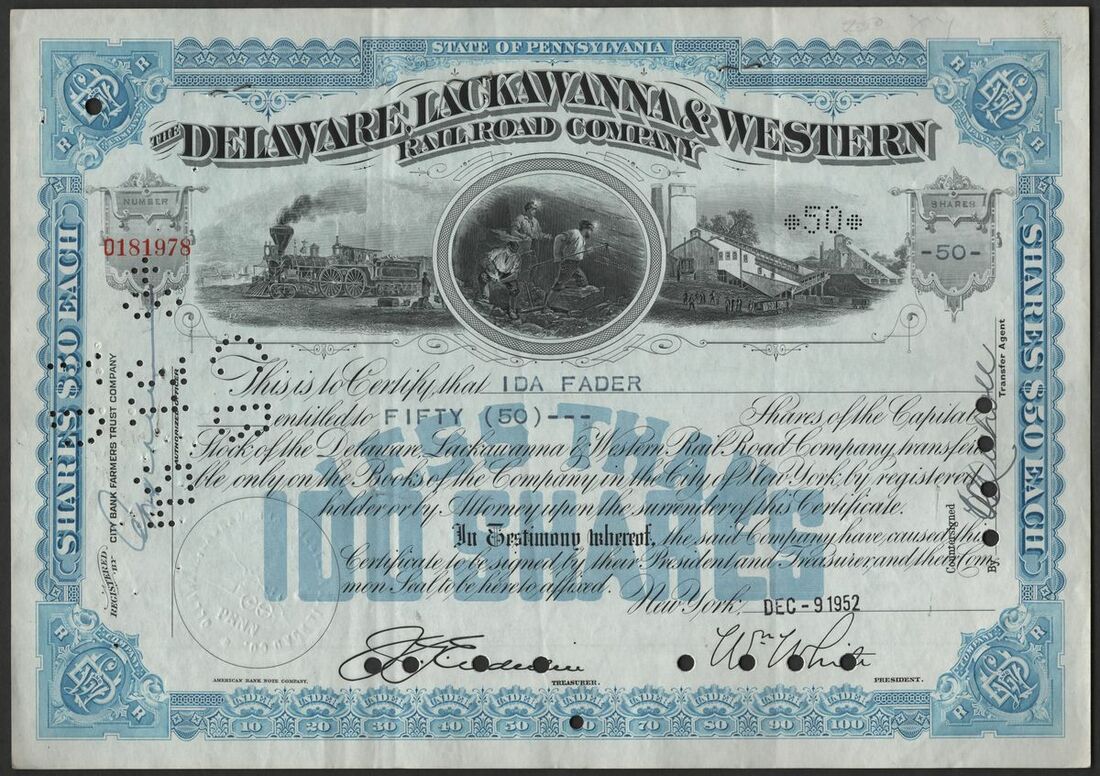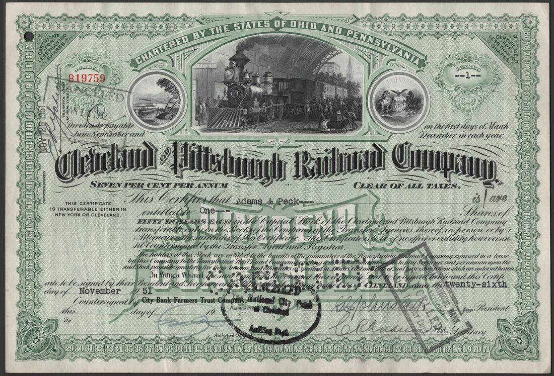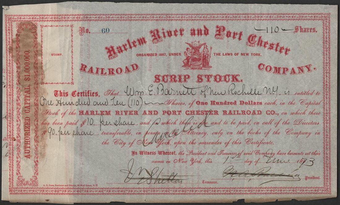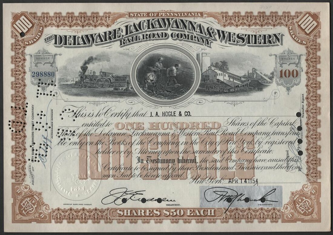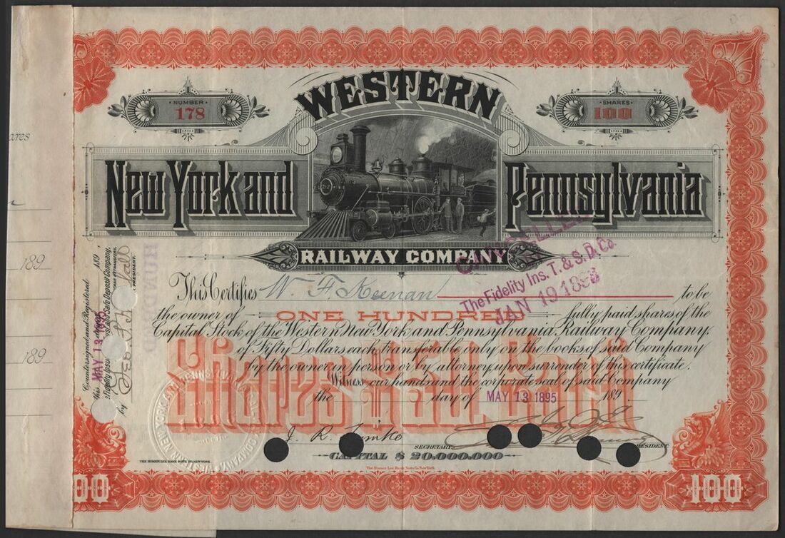 U.S.A.: A group of Railroad stock certificates, comprising Hartford and Connecticut Valley RR; Harlem River and Port chester RR;, Mississippi and Missouri RR; Keokuk and Des Moines Rly; Mobile & Ohio RR, 2 types; Western New York and Pennsylvania Railway; Utica, Clinton and Binghamton Rail Road, 2 types, and, others (6). Please see images for details. Most cancelled, Many VF and better (15).
