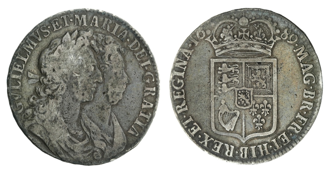 William and Mary (1688-1694), Halfcrown, 1689 PRIMO, first draped and conjoined bsuts right, rev. crowned first shield, seven strings to harp, lettered edge, 6h, 14.44g (ESC 503; Bull 826; Spink 3434), contact marked and flat in parts to darkened surfaces, bolder fine