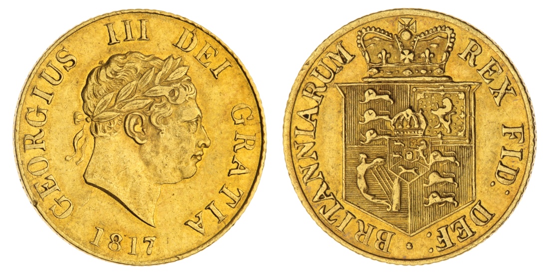 (g) George III (1760-1820), 'New Coinage', Half-Sovereign, 1817, laureate head right, rev. crowned shield, edge milled, 3.99g, 5h (Marsh 400; MCE 467; Spink 3786), rubbed at high points, yet with residually lustrous and flashy surfaces, very fine, the immensely popular first year of issue