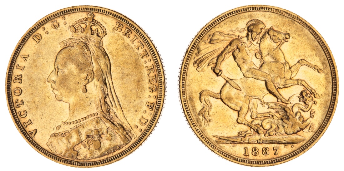 (g) Victoria (1837-1901), 'Jubilee' Sovereign, 1887 M, Melbourne, Jubilee bust left, repositioned legend, rev. St George and Dragon, milled edge, 7.96g, 12h (Marsh 109; Spink 3867B), lightly contact marked, nevertheless with some lustre to legend, about very fine