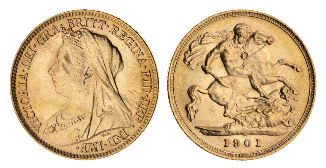 (g) Victoria (1837-1901), 'Old Head' Half-Sovereign, 1901, veiled head left, rev. St George and Dragon, milled edge, 4.00g, 12h (Marsh 496; Spink 3878), some very faint surface marks to otherwise pleasingly lustrous surfaces, good extremely fine and rather choice