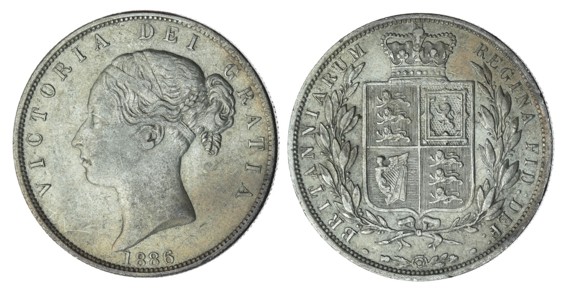 Victoria (1837-1901), 'Young Head' Halfcrown, 1886, young head left, 'of inferior workmanship', no initials on truncation, rev. crowned square topped shield within wreath, milled edge, 14.07g, 6h (ESC 715; Bull 2767; Spink 3888), some very faint superficial hairlines and previously wiped, yet now with lightly toned and pearlescent surfaces, very fine