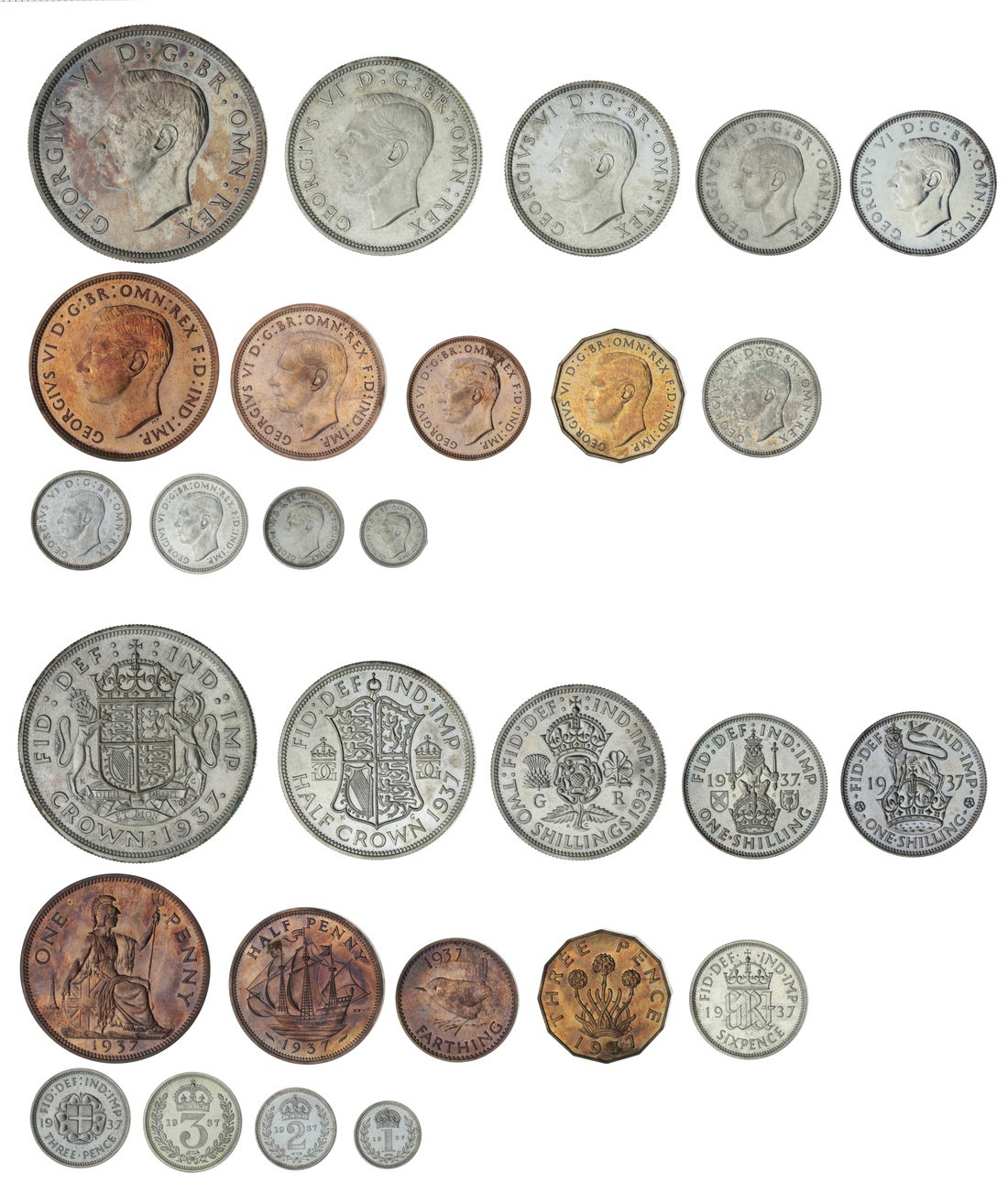 George VI (1936-1952), Coronation Specimen Part Set, 1937 (14), Crown to Farthing, and Maundy Fourpence to Penny (Spink PS16), Maundy Fourpence missing from set, all lightly toned and brilliant, uncirculated, in original Royal Mint case of issue (14)