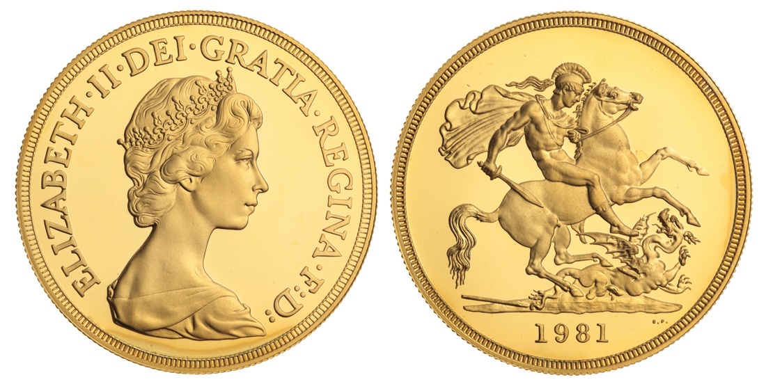 (g) Elizabeth II (1952-2022), Proof Five Pounds, 1981, crowned bust right, by Arnold Machin, rev. St George and dragon, milled edge, 12h, 39.99g (Spink SE1), brilliant as struck, only of only 5,400