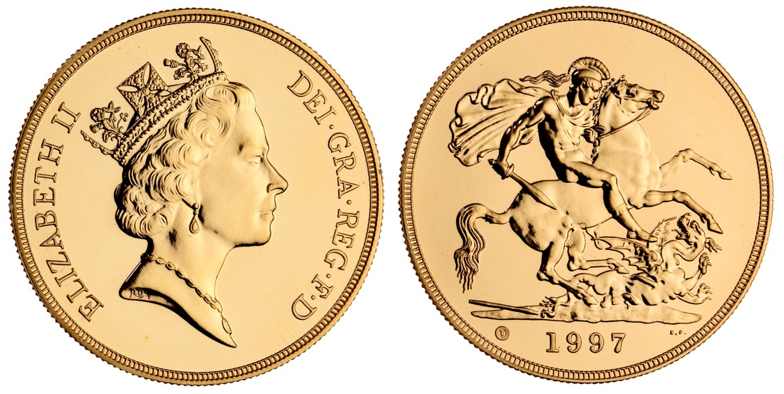 (g) Elizabeth II (1952-2022), Brilliant Uncirculated Five Pounds, 1997, crowned head right, rev. St George and dragon, milled edge, 12h, 39.96g (Spink SE4), brilliant and as struck, in original Royal Mint case of issue, No. 0472. One of only 802 struck