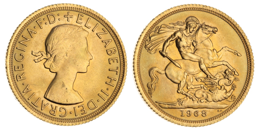 (g) Elizabeth II (1952-2022), Sovereign, 1968, laureate bust right, rev. St George and dragon, milled edge, 12h, 8.00g (Marsh 306; Spink 4125), some very faint pin marks to the hair, otherwise pleasingly lustrous, extremely fine example of Gillick's portrait