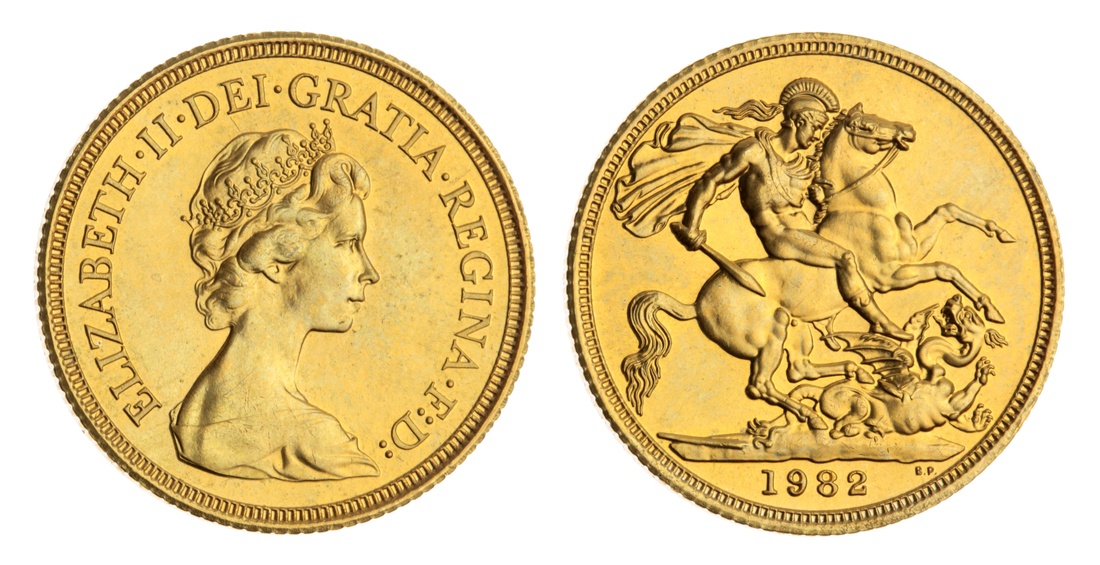 (g) Elizabeth II (1952-2022), Sovereign, 1982, crowned bust right, rev. St George and dragon, milled edge, 8.00g, 12h, (Spink SC1), lustrous, practically as struck
