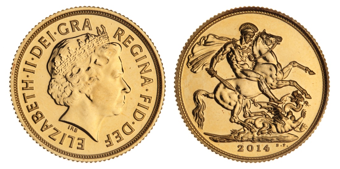 (g) Elizabeth II (1952-2022), Sovereign, 2014, crowned bust right, by Ian Rank Broadley, rev. St George and dragon, milled edge, 12h, 8.06g (Spink SC7), hairline scratch across the mouth, otherwise brilliant, near as struck