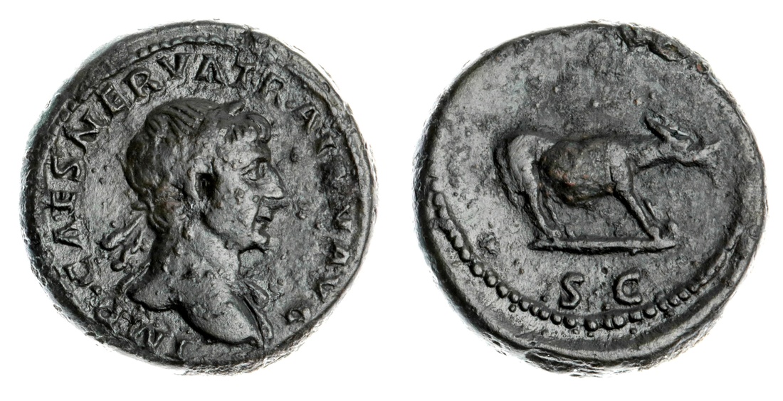 Roman Empire, Trajan (98-117), AE Quadrans, AD 114-117, Rome, IMP CAES NERVA TRAIAN AVG, laureate head right, rev She-Wolf baying right, S C in exergue, 3.47g (RIC 692), corrosion over surface of obv, notably on belly of she-wolf, dark green patina, very fine