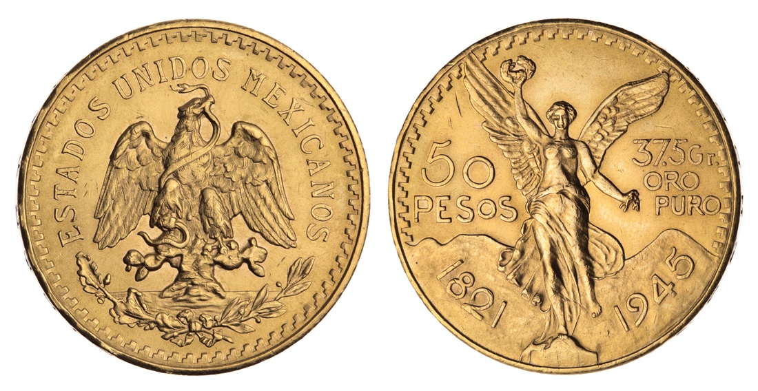 (x) Mexico, 'Centennial of Independence', 50 Pesos, 1945, winged Victory, rev. national arms, lettered edge, 6h, 41.65g, (KM 481), a handful of nailmarks to otherwise lustrous surfaces, bolder very fine