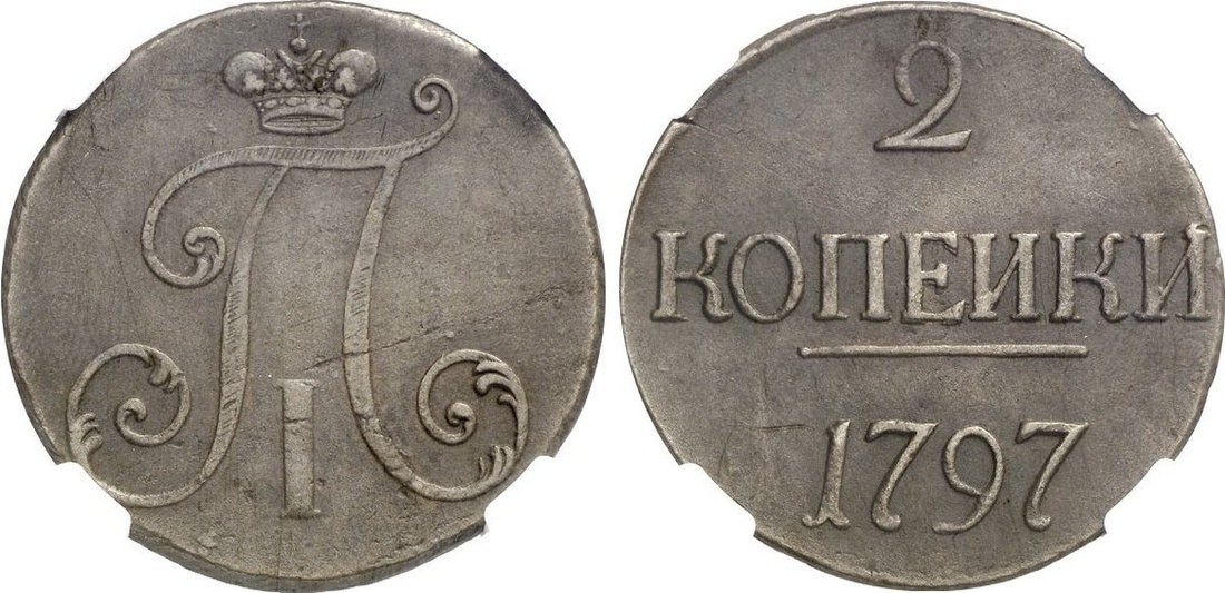NGC XF40 BN | (Tsarist) Russia, Paul I Petrovich (1796-1801), 2-Kopeks, 1797, edge obliquely grained, 59.06g, 12h (Brekke 68; Uzd. 2940; Diakov 10var.; Bitkin 192), good very fine, in NGC holder, graded XF40 BN (Cert. #3348481-002)