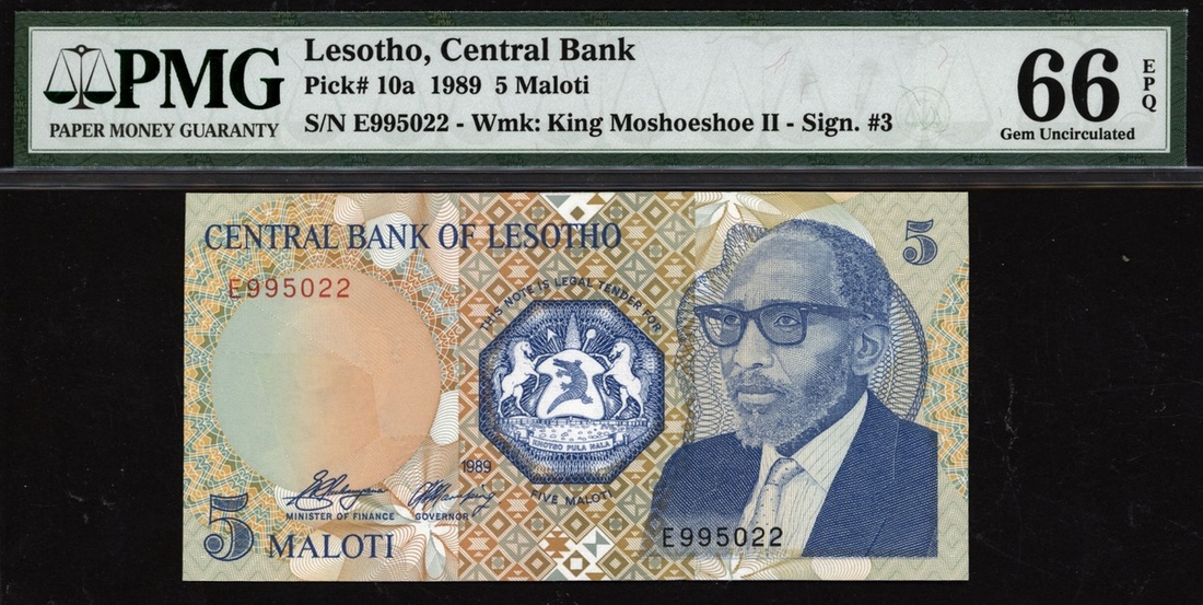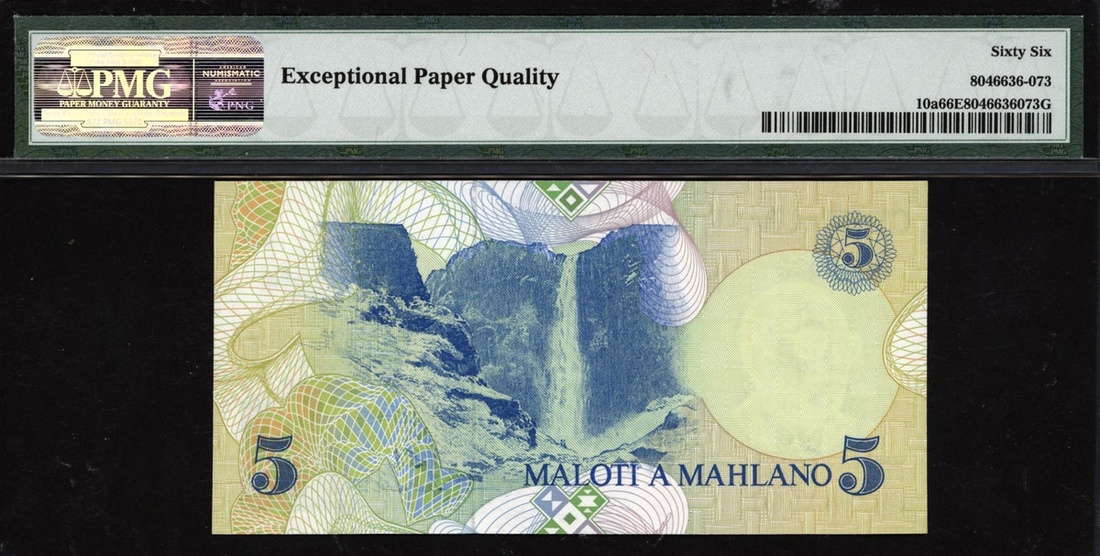 (x) Central Bank of Lesotho, 5 maloti, 1989, serial number E995022, (Pick 10a), in PMG holder 66 EPQ Gem Uncirculated