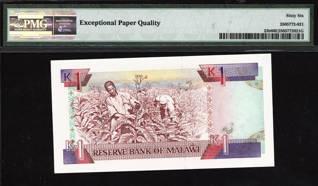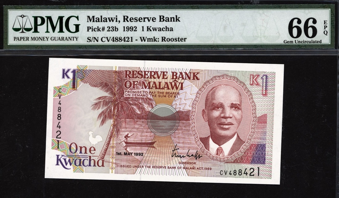 (x) Reserve Bank, Malawi, 1 kwacha, 1992, serial number CV488421, (Pick 23b), in PMG holder 66 EPQ Gem Uncirculated