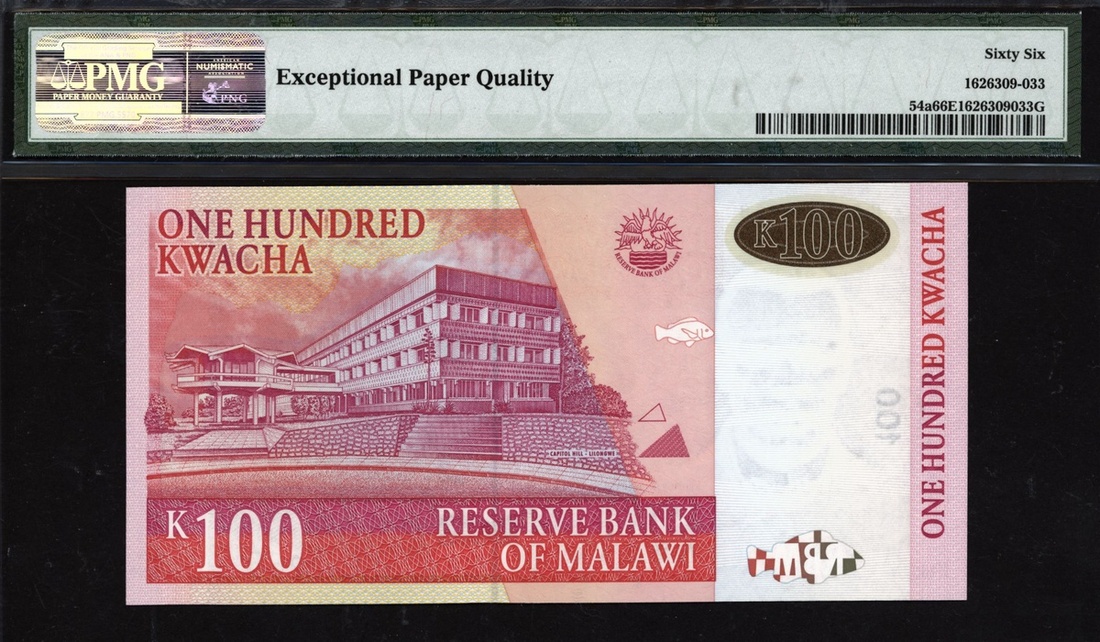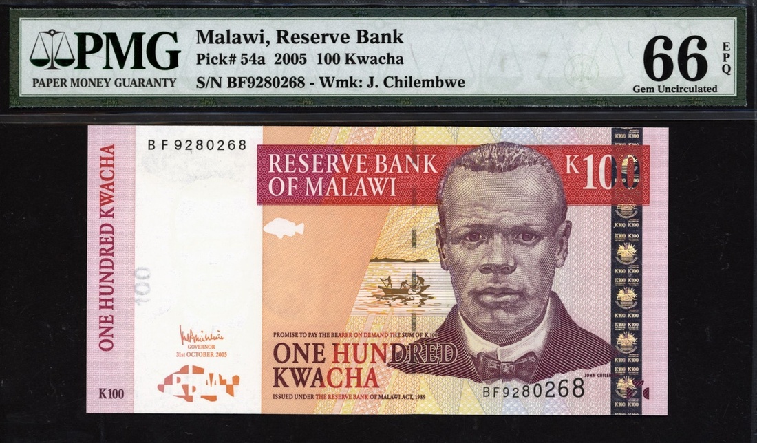 (x) Reserve Bank, Malawi, 100 kwacha, 2005, serial number BF9280268, (Pick 54a), in PMG holder 66 EPQ Gem Uncirculated
