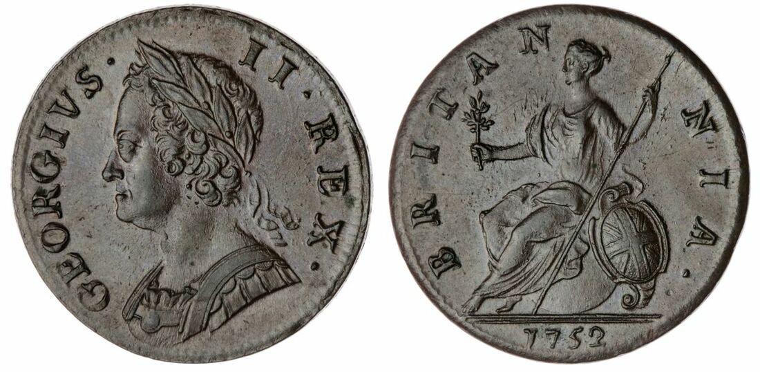 The 'Haddenham' Collection of English Coins | George II (1727-1760), Copper Halfpenny, 1752, old laureate and cuirassed bust left, rev. britan-nia., Britannia seated left, date in exergue, plain edge, 9.77g, 6h (Peck 882; Spink 3719), some light cabinet friction and a few small contact marks, toned with underlying lustre, extremely fine