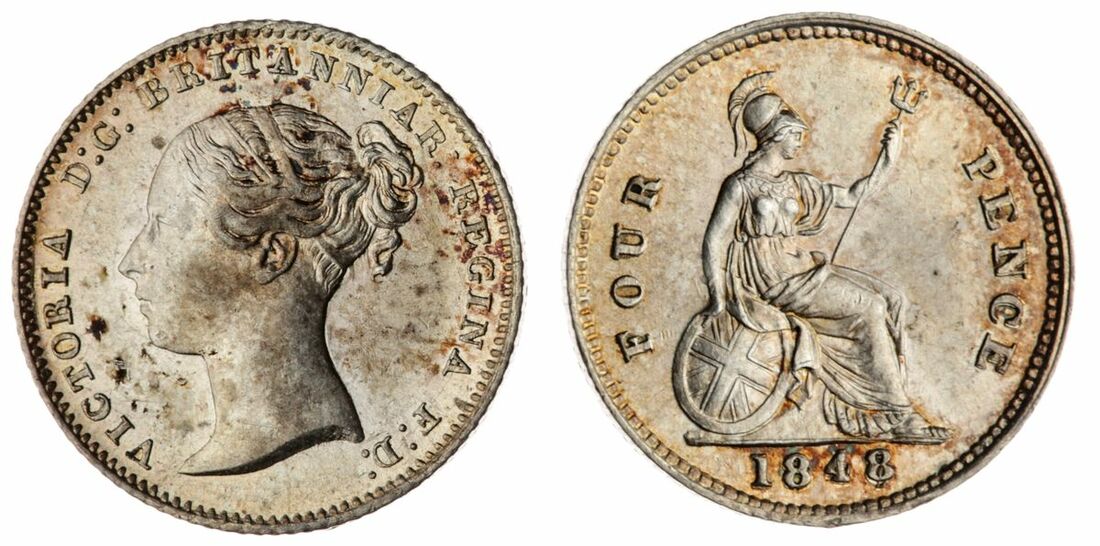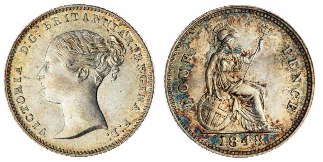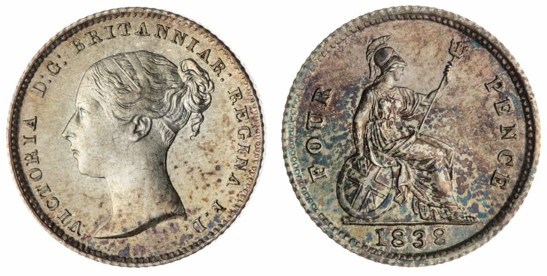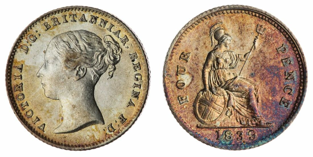 The 'Haddenham' Collection of English Coins | Groat Collection, William IV 1836, 1837, Victoria 1838 1839, 1840, 1841, 1842, 1843, 1844, 1845, 1846, 1848, 1848 G over G (unlisted), 1848/6, 1848/46 (unlisted), 1849, 1849/8, 1851, 1854, 1855, 1888, rev. Britannia facing right, milled edge, 12h (Spink 3837, 3913, 3930), Some light toning to most, extremely fine to good extremely fine (21)