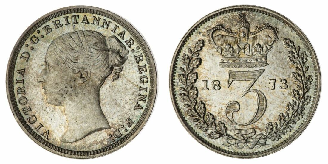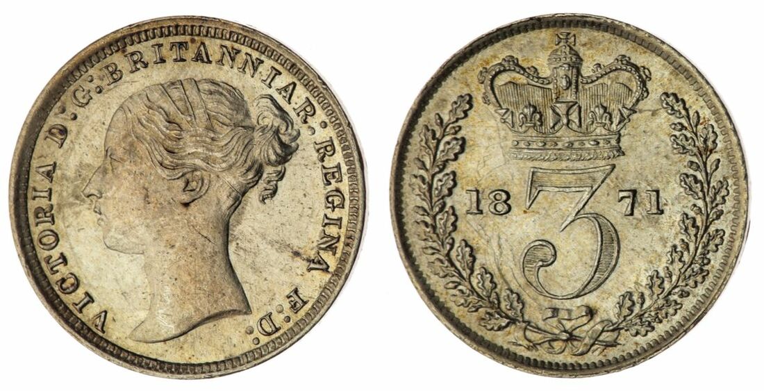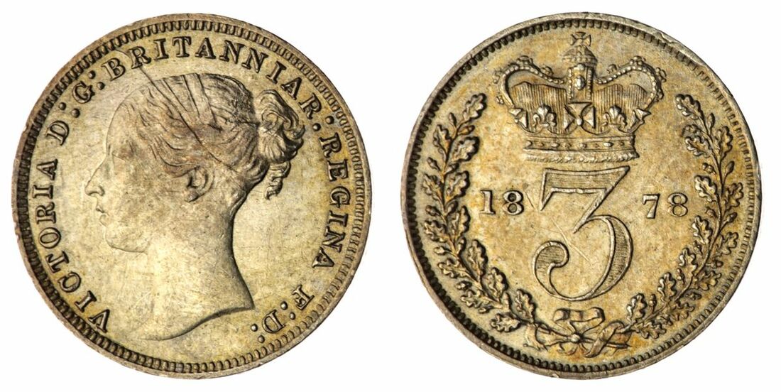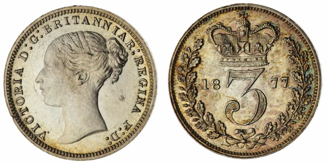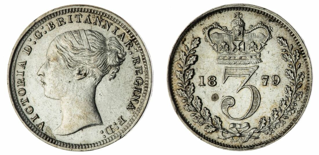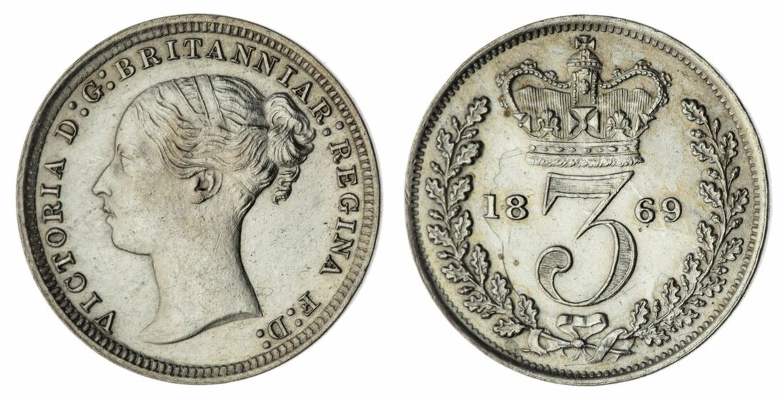 The 'Haddenham' Collection of English Coins | Victoria (1837-1901), (12) Threepences, 1862, Young head left, first bust variety rev. Crowned value in wreath, smooth edge, 1.41g, 6h (ESC. 2069; Spink 3914A), full lustre and brilliance, uncirculated; and 1869, 1870, 1871, 1873, 1874, 1875, 1876, 1877, 1878, 1879, 1884, young head left, second bust rev. crowned value and date in wreath, cross on crown closer to border, smooth edge, 6h (Spink 3914C), lightly toned, extremely fine to brilliant uncirculated (12)