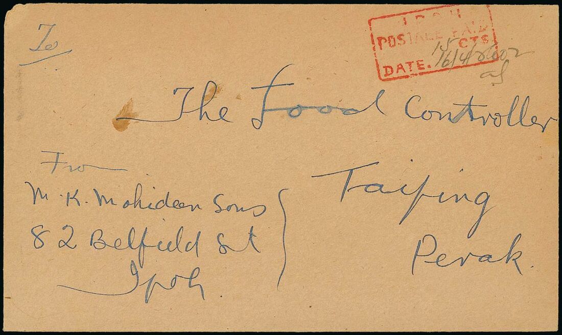 1942 (16 Apr.) envelope to Taiping showing good to fine framed