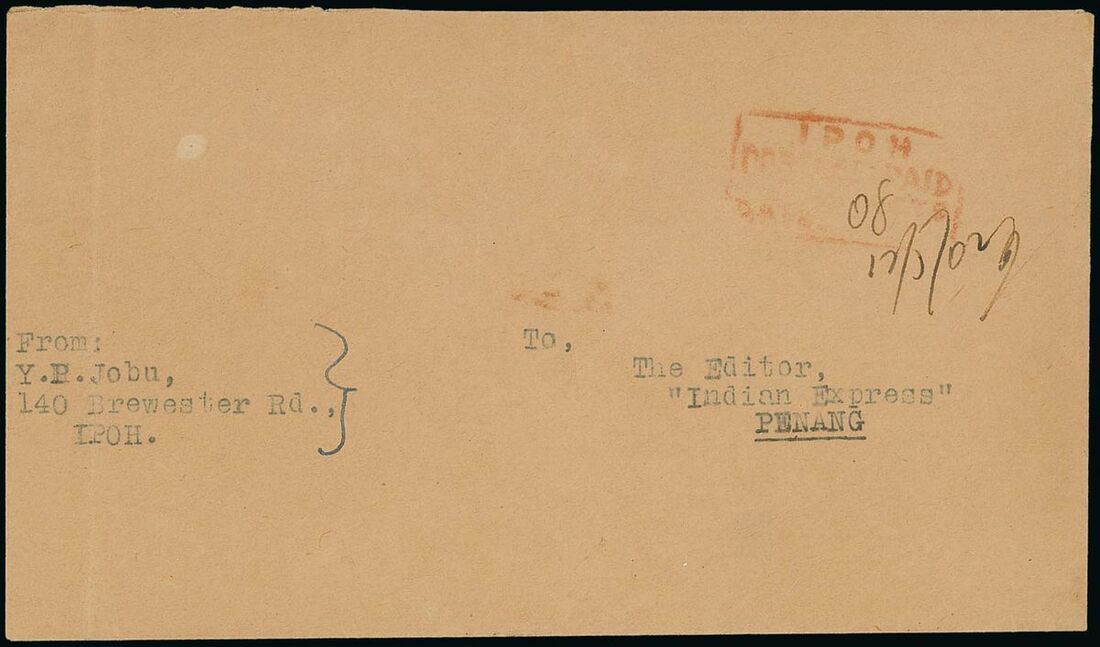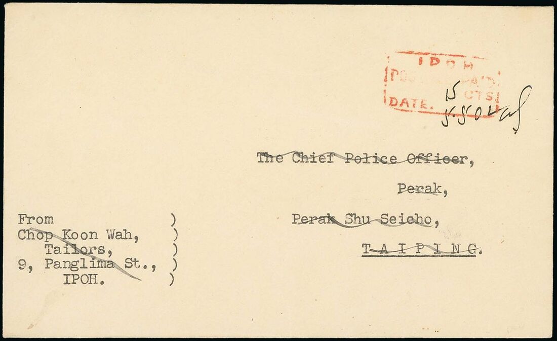 1942 (5 May) and (12 May) envelopes to Taiping and Penang, showing fair to fine framed