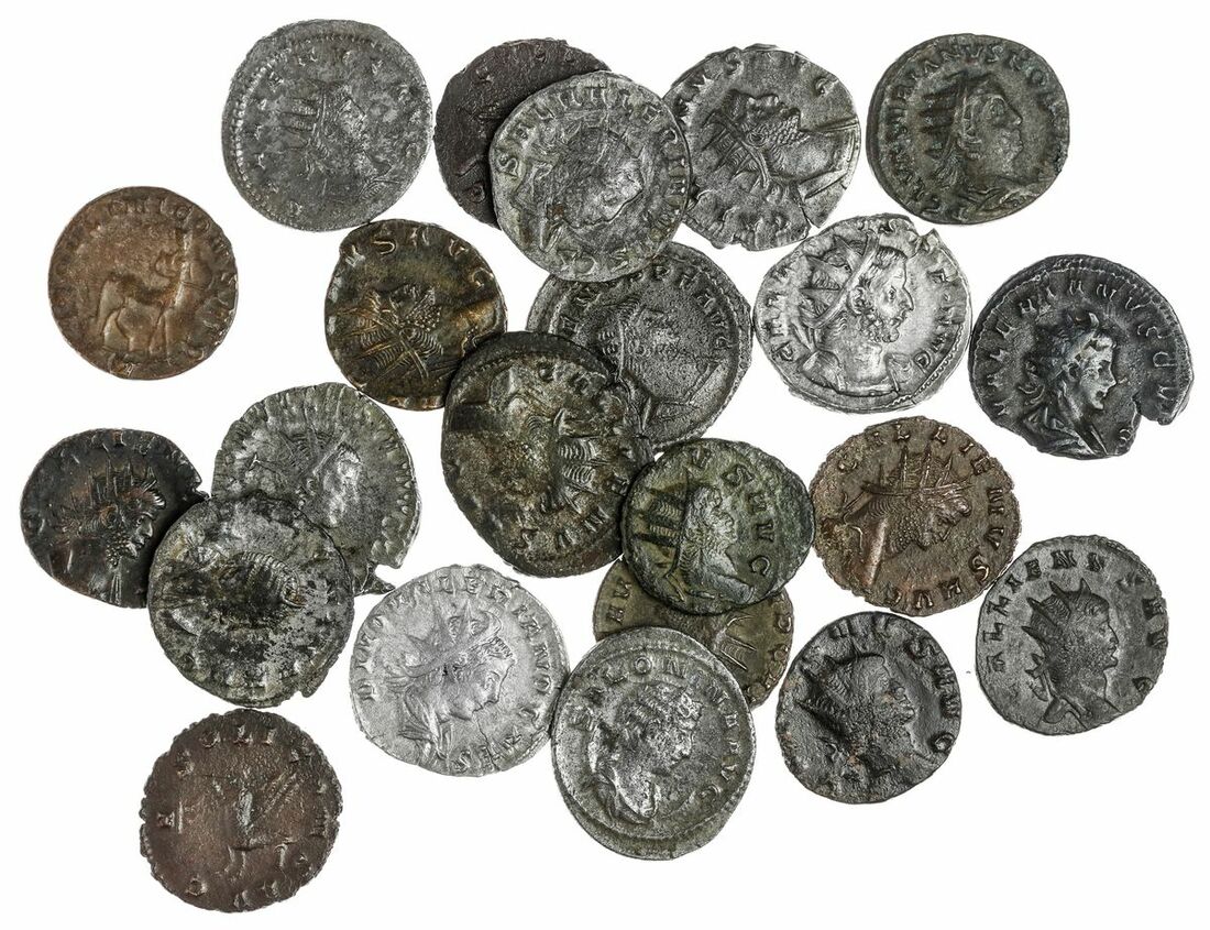 Early Third-Century Antoninianii (22): Gallienus (15): 3.23g; 3.65g; 2.43g; 3.14g; 2.75g; 2.64g; 2.77g; 4.02g; 2.89g; 3.03g; 2.92g; 2.96g; 2.80g; 3.22g; 2.95g; Saloninus (2): 3.40g (RIC, 9); 3.53g; Salonina (2): 3.40g; 2.93g; Valerian II (3): 3.49g; 3.65g (RIC, 3); 3.12g (RIC, 8), ranging from good to very fine, many with good remnants of silvering and clean strikes (22). sold as described, no returns