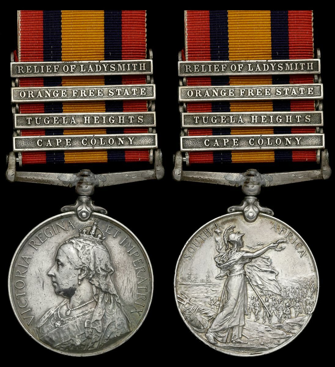 (x) Queen's South Africa 1899-1902, 3 clasps, Cape Colony, Tugela Heights, Orange Free State, Relief of Ladysmith (96610 Gnr: H. Mills, 4th M.B., R.G.A.), suspension and swivel replacements, nearly very fine