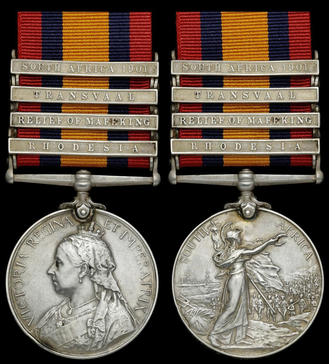 (x) Queen's South Africa 1899-1902, 4 clasps, Rhodesia, Relief of Mafeking, Transvaal, South Africa 1901 (75 Q.M.Sjt: C. F. Crowden. Rhodesia Regt.), good very fine