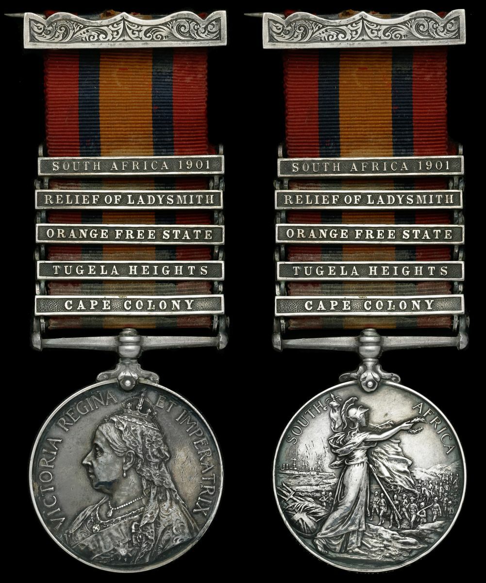(x) Queen's South Africa 1899-1902, 5 clasps, Cape Colony, Tugela Heights, Orange Free State, Relief of Ladysmith, South Africa 1901 (87 Pte. J. R. Prince 14th Hussars.), with an ornate buckle bar, very fine