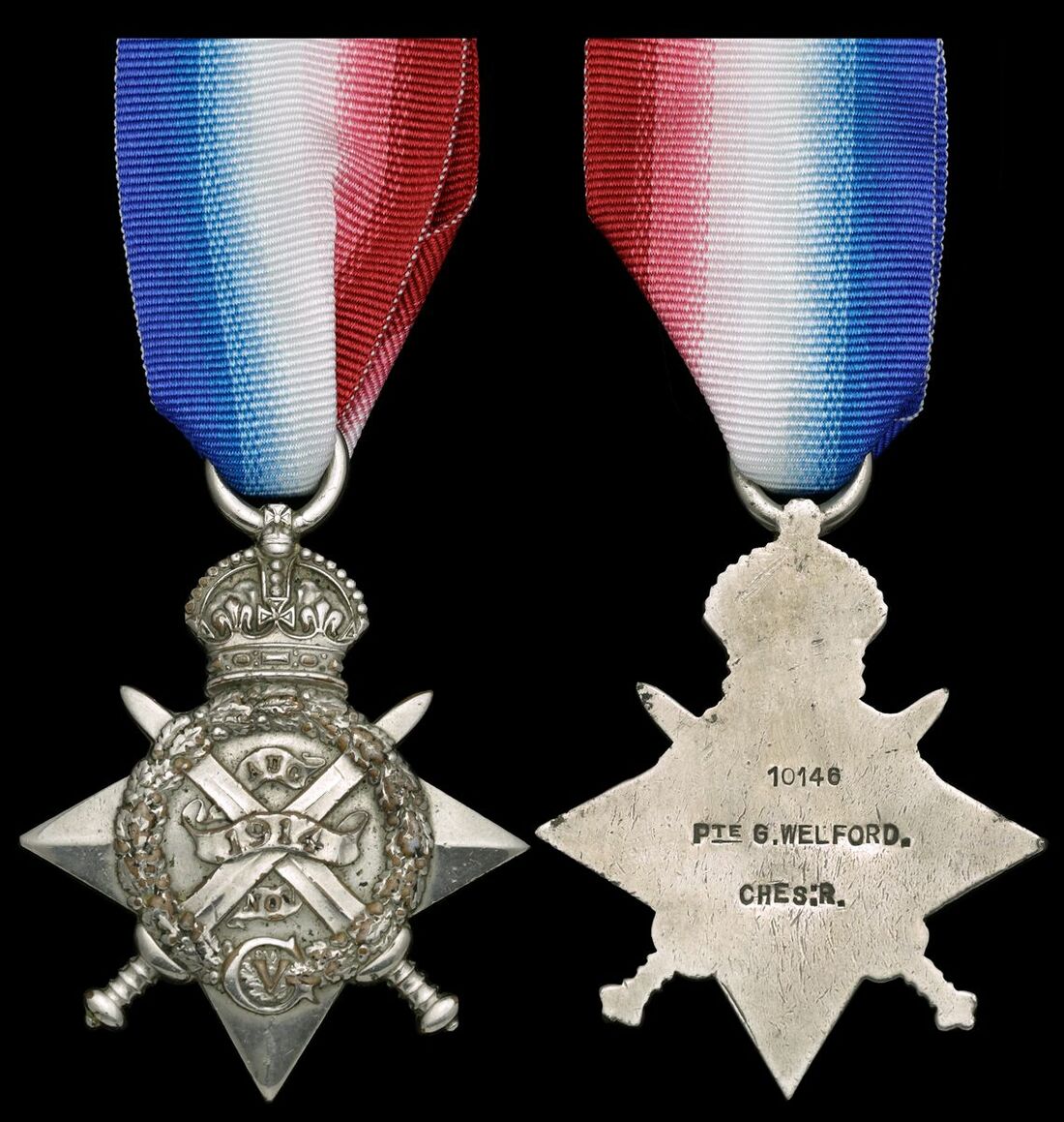 1914 Star (10146 Pte G. Welford. Ches: R.) sometime silvered, very fine